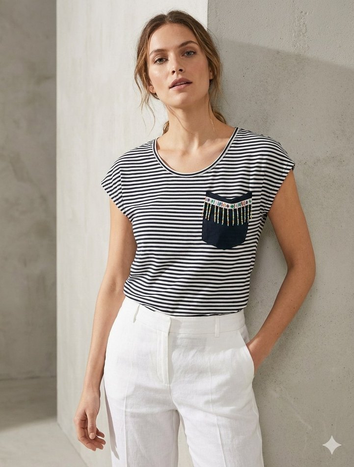 Boncuk detaylı otantik dantelli tişört