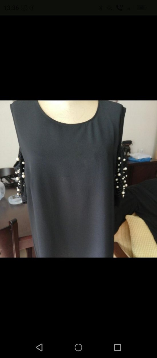 Siyah, bisiklet yaka ve boncuk işlemeli yarım kollu bluz. Yumuşak kumaştan, günlük kullanıma uygun goth minimalist tarzda. şık 1 kere nikahta giydim ölçüler üstünde ölçuye göre alın