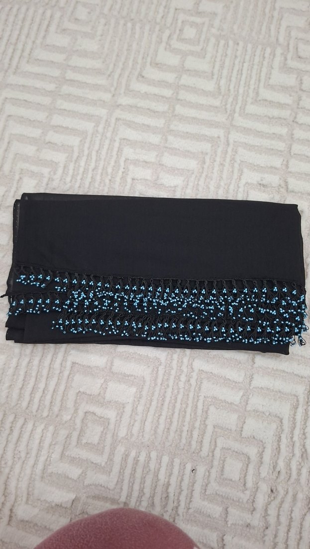 Boncuk işlemeli, siyah renkte Mavi boncuklu tığ 2 kenarlı