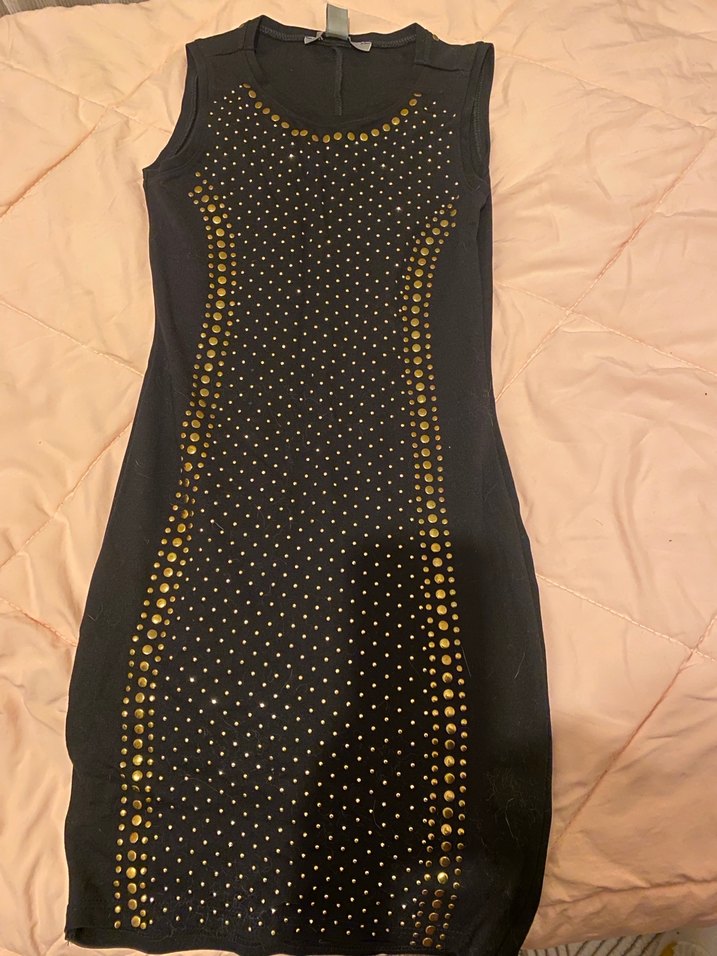 Siyah, v yaka, kolsuz, boncuk işlemeli desenli, dar kesim midi elbise, romantik akşamlar için uygun.