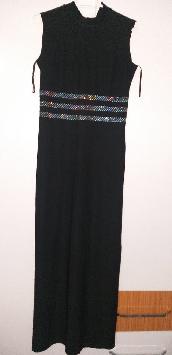 Boncuk işlemeli, hakim yakalı siyah uzun elbise, ince yapısıyla parti için uygundur. Sentetik kumaştan yapılmıştır ve gotik-avant-garde tarzına sahiptir. Standart beden olup 38‐40 beden uyumludur. 2 kere giyilmiştir ve çok zarif bir elbisedir.Fotografta göründüğünden daha güzeldir.