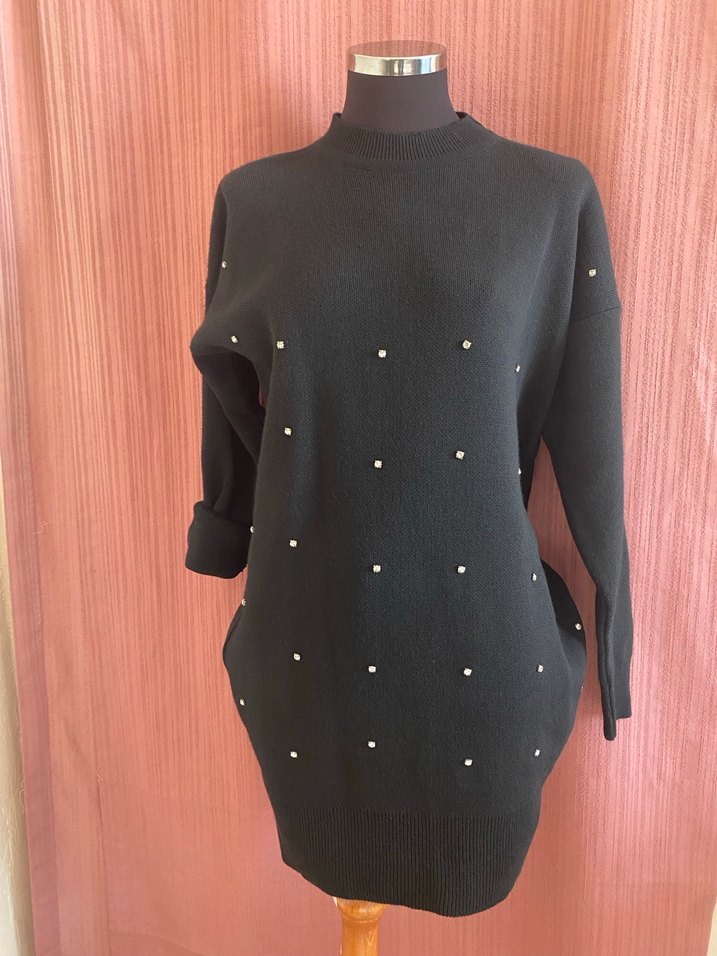 Boncuk detaylı siyah triko tunik uzun kollu ve bisiklet yaka. Günlük kullanıma uygun, rahat ve trend goth tarzda.