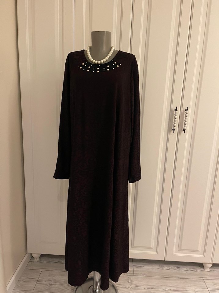Büyük beden Kol altı 61cm 1.24 boy 100 tl Siyah, uzun kollu ve yüksek yakalı bu elbise, ipeksi kumaştan ve boncuk detaylıdır. Gevşek kesimi ve gotik tarzıyla günlük kullanıma uygundur.