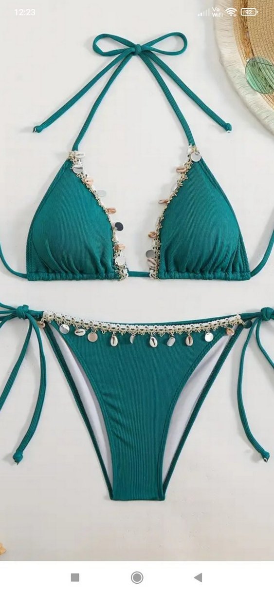 Boncuk Detaylı Turkuaz Kadın Bikini,s beden var