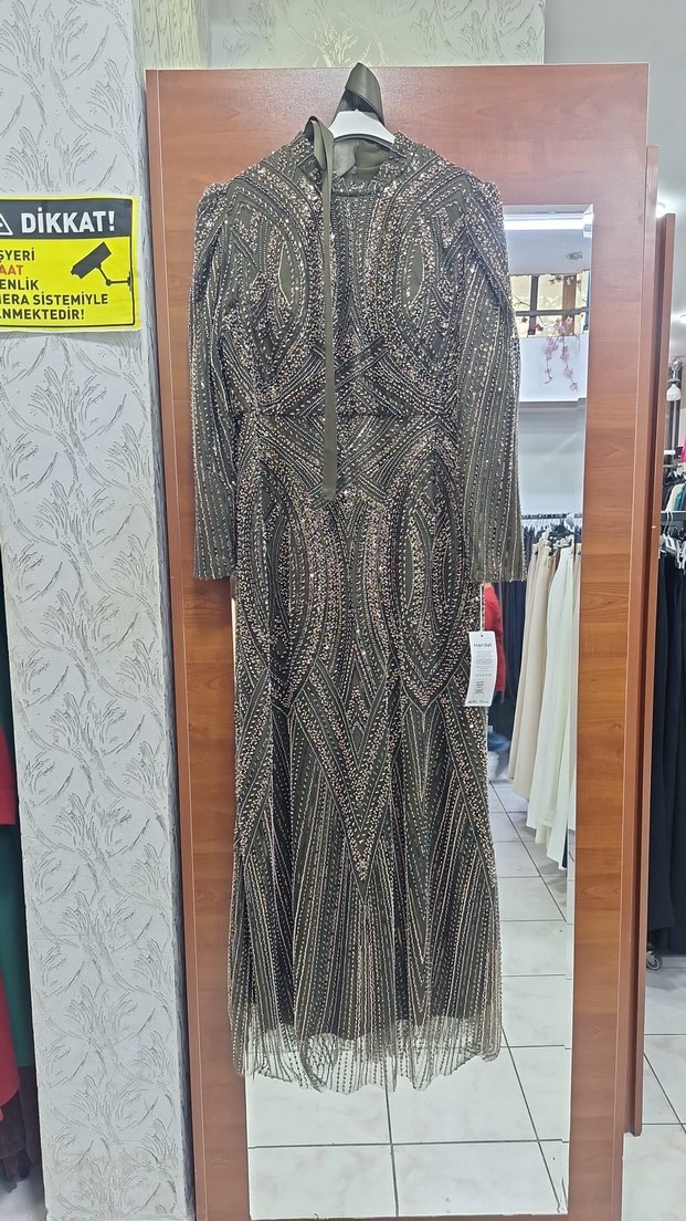 kiralama fiyatina satilik abiye elbise, tamamı boncuk işlemeli şal dahil