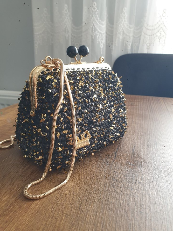 Boncuk işlemeli, altın renkli, yılan desenli triko dokulu kadın çanta, parti için uygun modern klasik tarzda, altın zincir askılı. El Emegimdir .