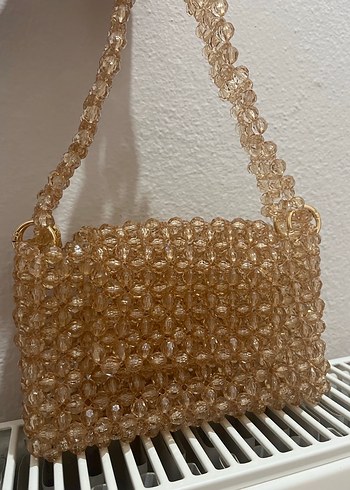 Parlak bej renkli, boncuk işlemeli örgü kadın çanta. Bohem tarzda, günlük kullanıma uygun vintage esintili tasarım. ✨