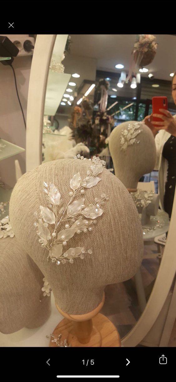 Açık bej renkli örgü kumaştan, boncuk işlemeli vintage bohem tarzında şık saç aksesuarı. Düğünüm için özel olarak yaptırmıştım. Kutusunda duruyor. Tekliflere açığım ✨