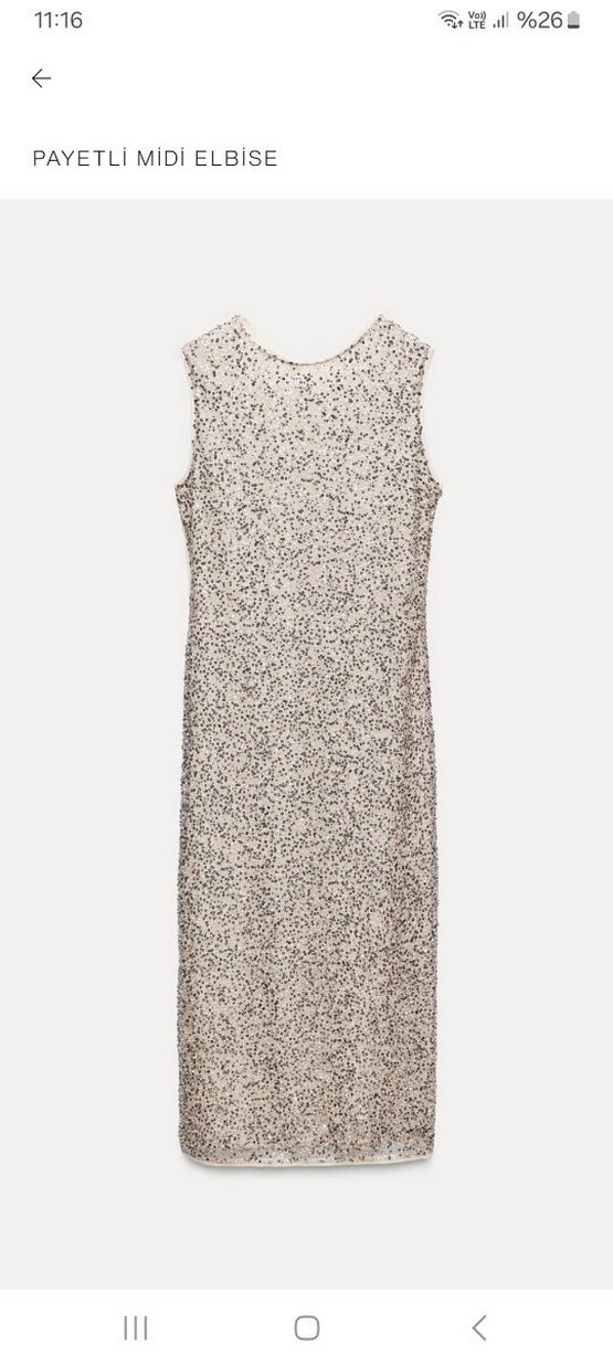 Bej renkte, boncuk işlemeli, kolsuz uzun abiye elbise. V yakalı ve regular fit kesimiyle parti için uygun.