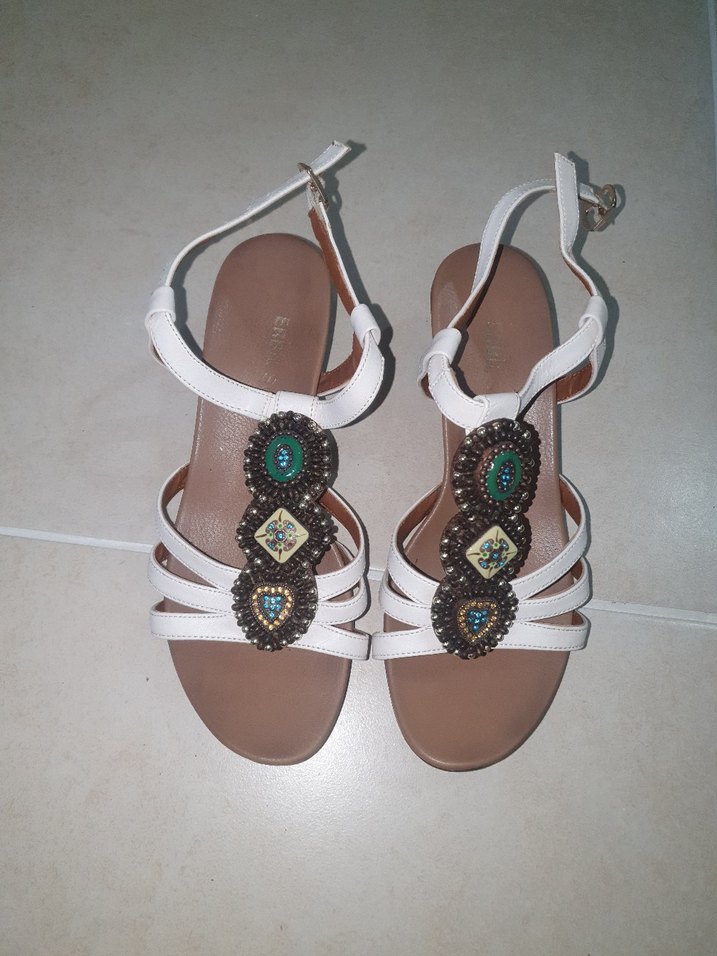 Boncuk İşlemeli Beyaz Bohem Dolgu Topuklu Sandalet. 38 NUMARA.