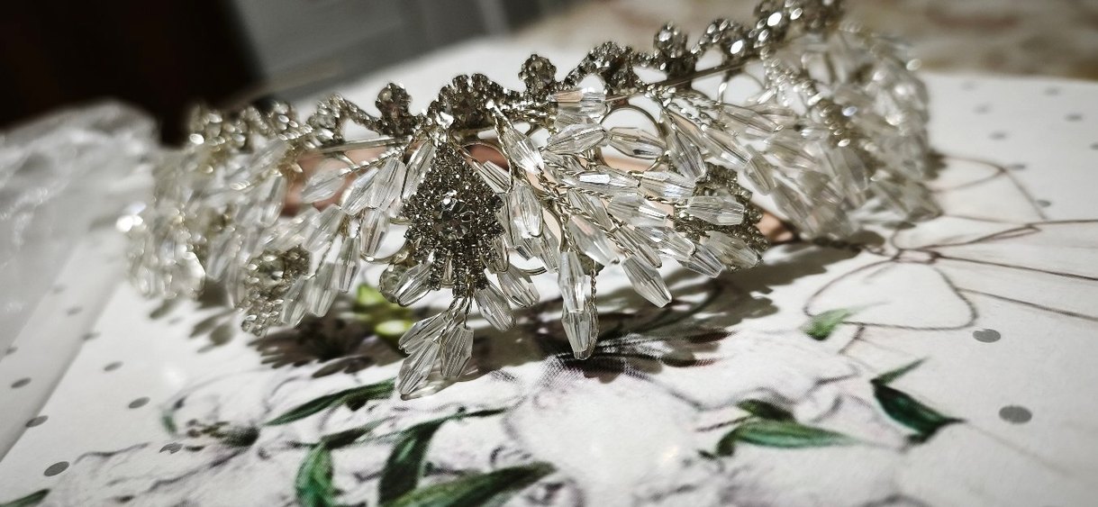 Bu çağdaş kadın saç aksesuarı, beyaz ve gri tonlarda boncuk işlemeli cam detaylara sahiptir ve göz alıcı bir stil sunar. ✨ sıfır ürün kullanılmadı tertemiz defosu yoktur