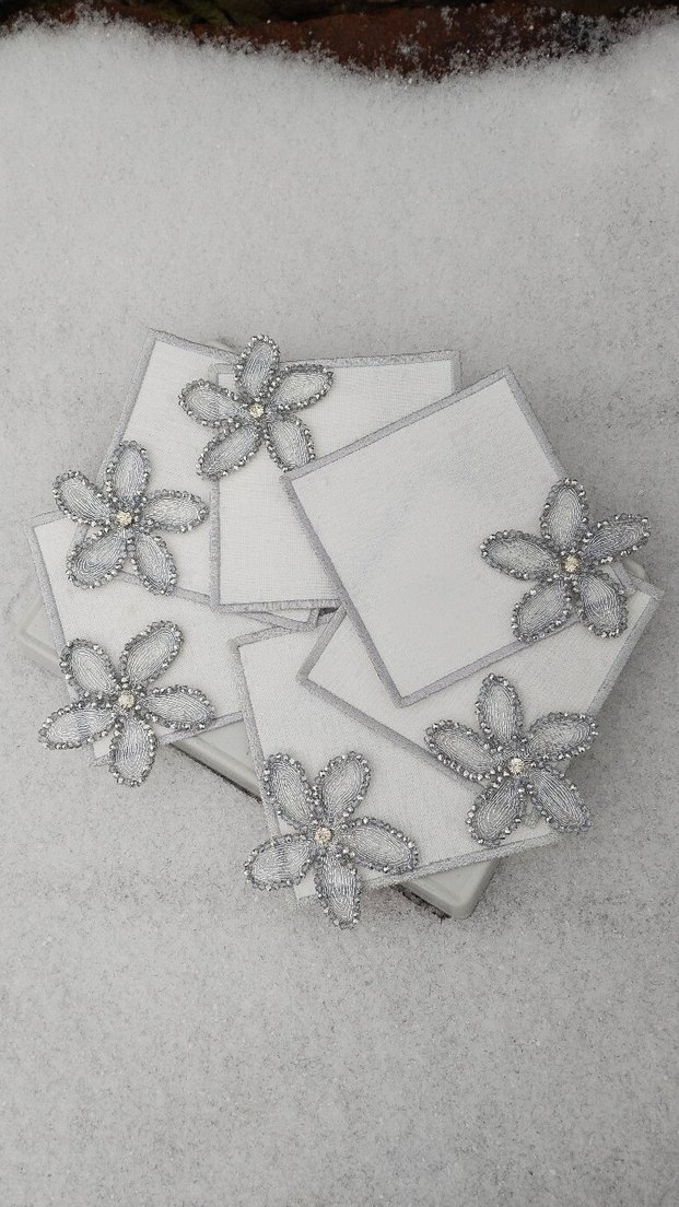 Boncuk işlemeli beyaz ve gri tonlarda ışıl ışıl sunum peçetesi 6 adet fiyatıdır.