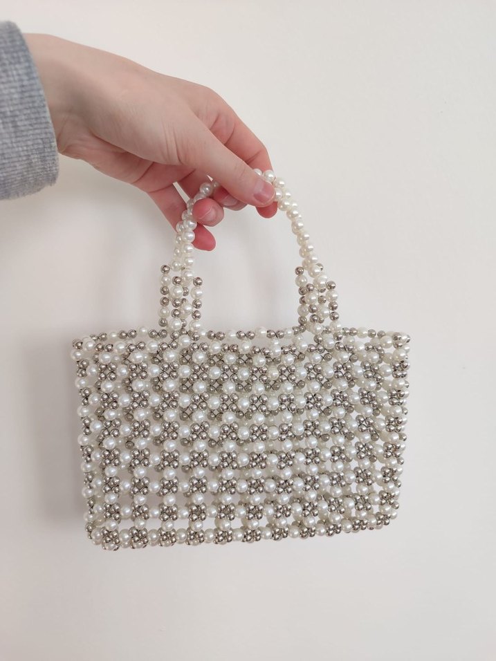 Boncuk işlemeli beyaz kadın çanta, minimalist ve bohem tarzları birleştirir. Günlük kullanım için uygundur.