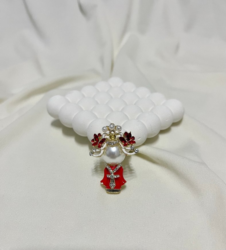 Boncuk İşlemeli Beyaz Kadın Çelik Broş