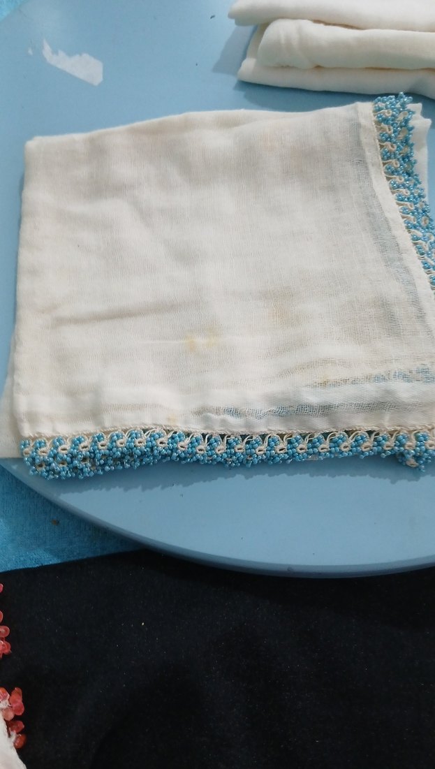 sandık ürünü Yumuşak dokulu beyaz kadın fular, kenarlarında ince boncuk işçiliği ile bohem tarzda tasarlanmıştır. 3 adeti boncuksuz toplam fiyatıdır