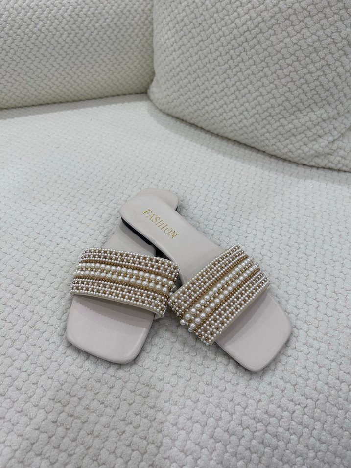 Boncuk İşlemeli Beyaz Kadın Terlik