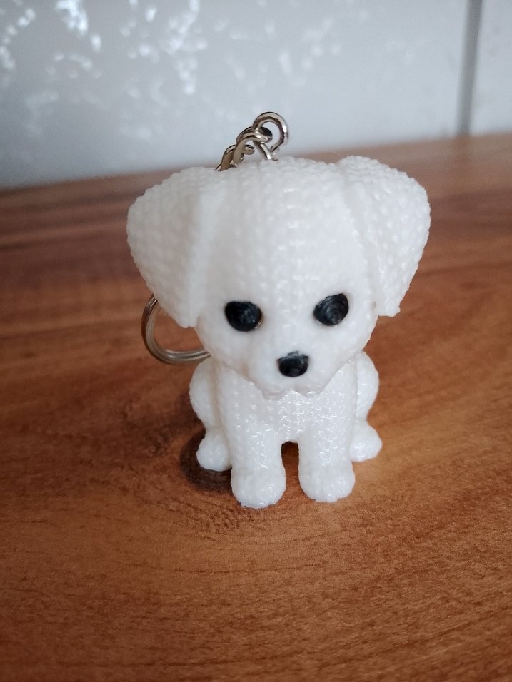 Küçük köpek şeklinde beyaz boncuk işlemeli anahtarlık, sade ve bohem tarzda, anahtarlarınıza hoş bir dokunuş katar.