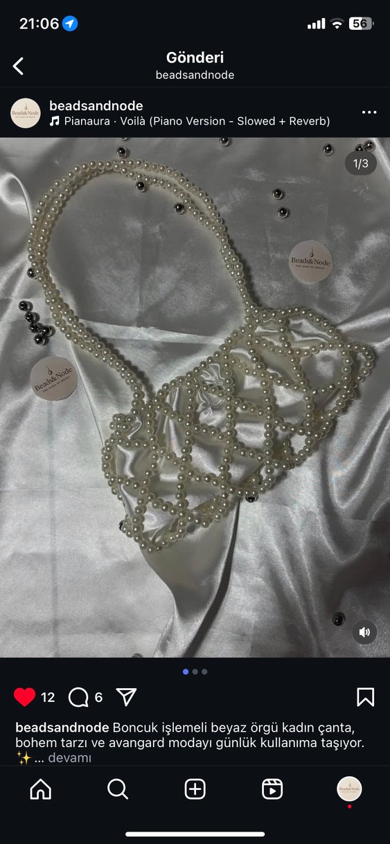 Beyaz örgü kadın çanta, boncuk işlemeli ve nakışlı tasarıma sahip. Parlak boncuklar, günlük kullanım için bohem tarz katıyor.