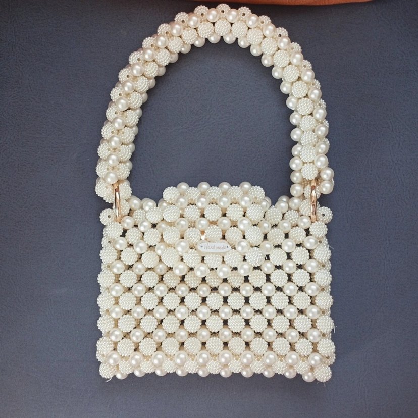Boncuk işlemeli beyaz örgü kadın çanta, bohem tarzıyla günlük kullanıma uygun, sade ve şık bir görünüme sahiptir.