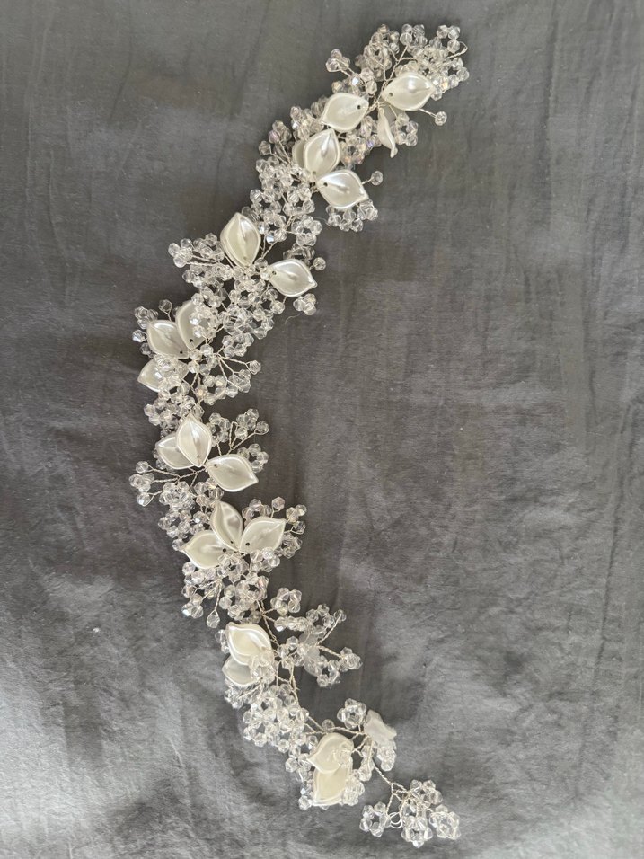 Boncuk İşlemeli Beyaz Örgü Saç Aksesuarı