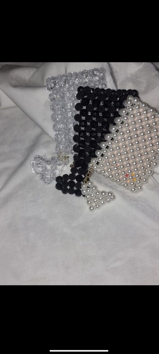 Boncuk İşlemeli Beyaz siyah şeffaf kartlık