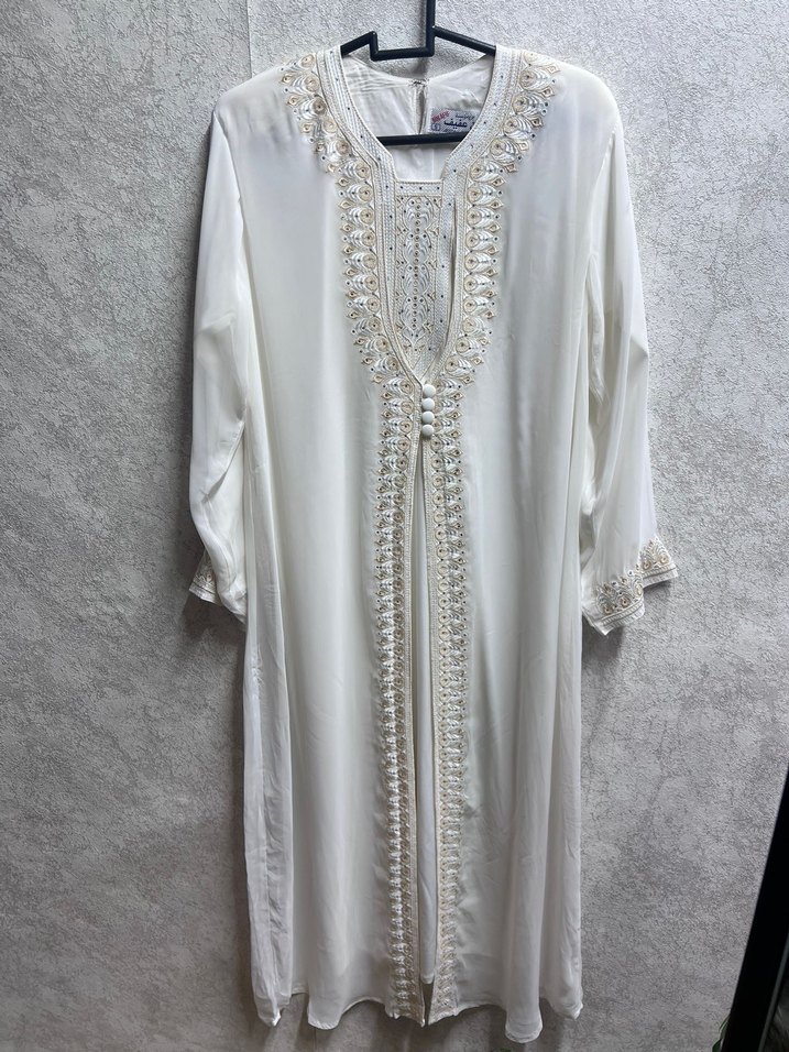 Boncuk İşlemeli Beyaz Uzun Kadın hac Elbise