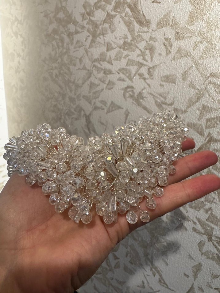 Bu bohem tarzı gelin aksesuarı, ışıl ışıl beyaz boncuk işlemeleriyle trendsetter ve avant-garde görünüm sağlar.