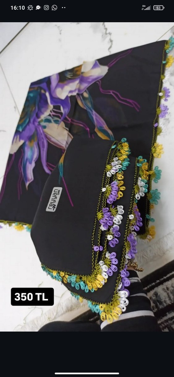 Boncuk işlemeli, çok renkli koyu tekstil kumaştan bohem tarzda kadın şalı. Fiyatı 350 TL.