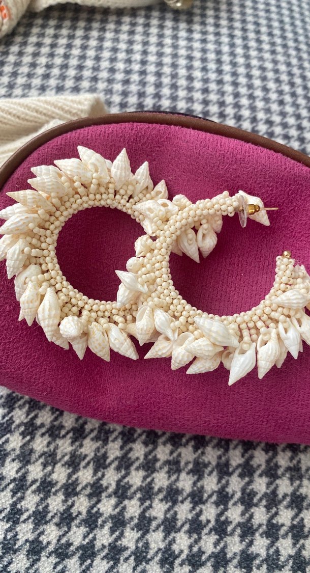 Boncuk İşlemeli Bohem Kısa Küpe deniz kabuklu