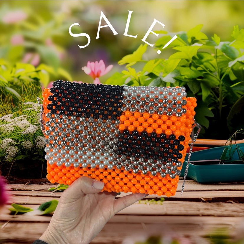 Plastik boncuklardan yapılmış, çok renkli koyu tonlarda bağlama desenli, bohem ve retro tarzda kadın çantası. Günlük kullanım için uygundur.