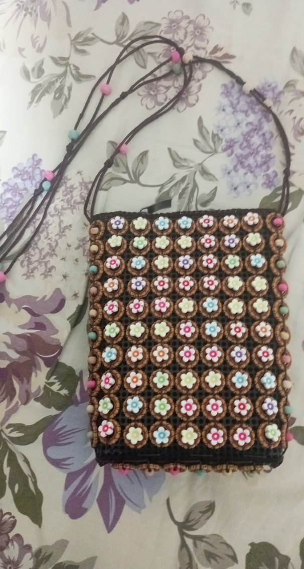 yurt dısında özel yapım, boncuk işlemeli çok renkli çiçek desenli bohem çanta, günlük kullanım için uygundur.