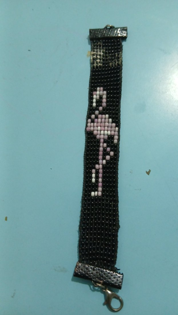 çocuk bileklik, boncuk işlemeli flamingo desenine sahip koyu renkli ve çok renkli tasarımla. Bohem, goth ve avangart tarzlara uygun, açık hava kullanımına ideal.