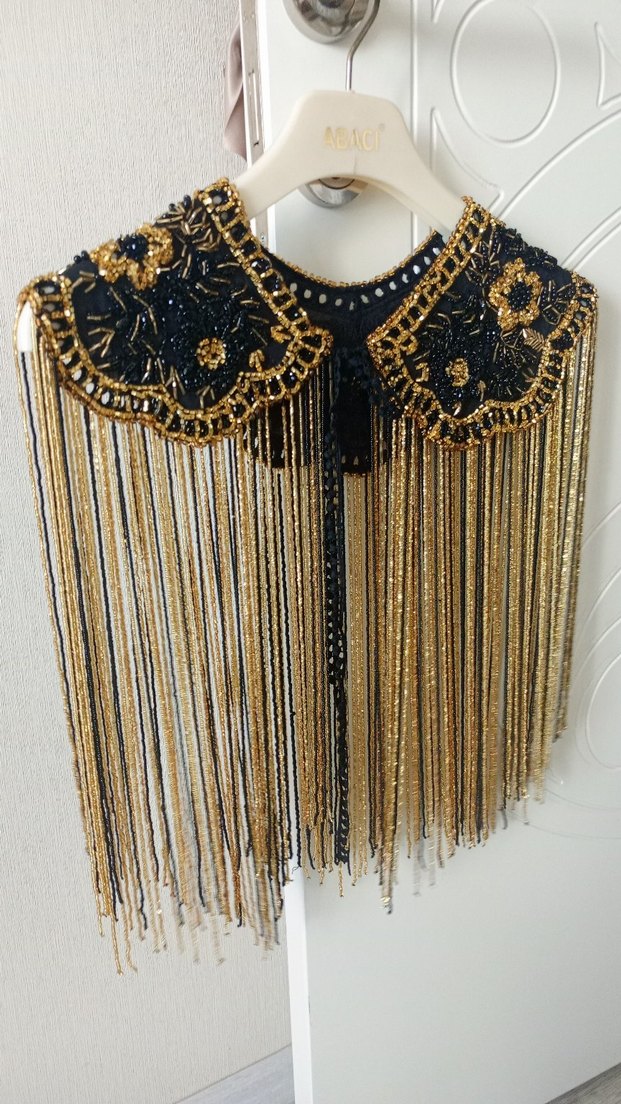 Boncuk İşlemeli goldRenk Kadın Vücut Zinciri el işlemesi omuzluk