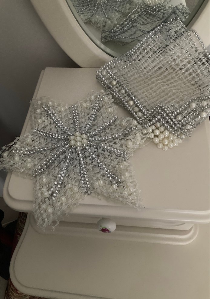 Boncuk İşlemeli Gri Beyaz Gelin Aksesuarı