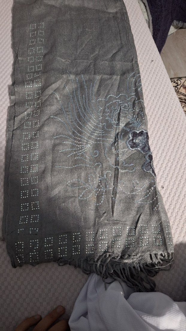 Boncuk İşlemeli Gri Bohem Kadın Şal