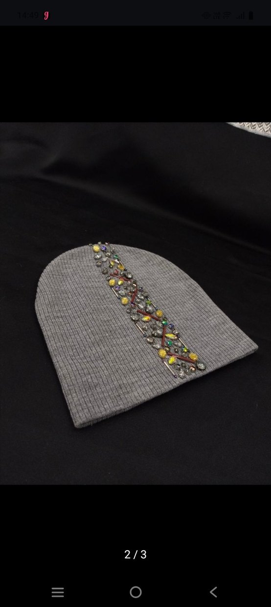 Gri örme bere, ortasında renkli boncuk işlemeli şeritle bohem ve retro tarz sunar. Rahat ve hippie esintili bir görünüm sağlar.
