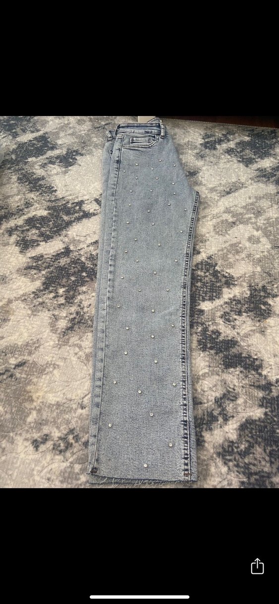 Boncuk işlemeli gri kot pantolon, regular fit ve uzun boylu, rahat günlük sokak stili için uygundur. 28 beden hiç kullanılmadı etiketi koparıldı sadece
