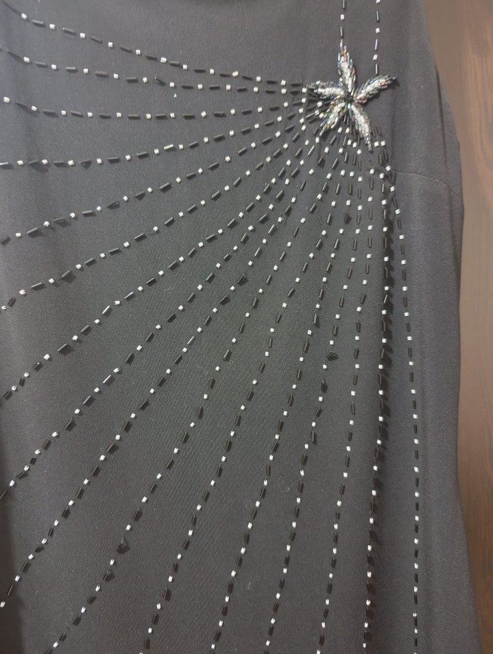 V yaka, askılı, boncuk işlemeli desenlerle süslenmiş, fitted kesim gri uzun abiye elbise. Avant-garde tarzı sevenler için uygun.