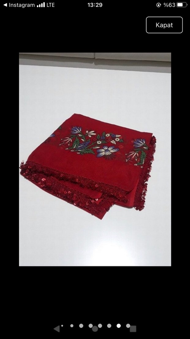 Boncuk İşlemeli Kırmızı Bohem Kadın Eşarp