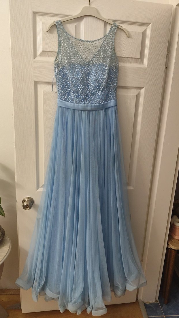 Boncuk İşlemeli Mavi Uzun Abiye Elbise