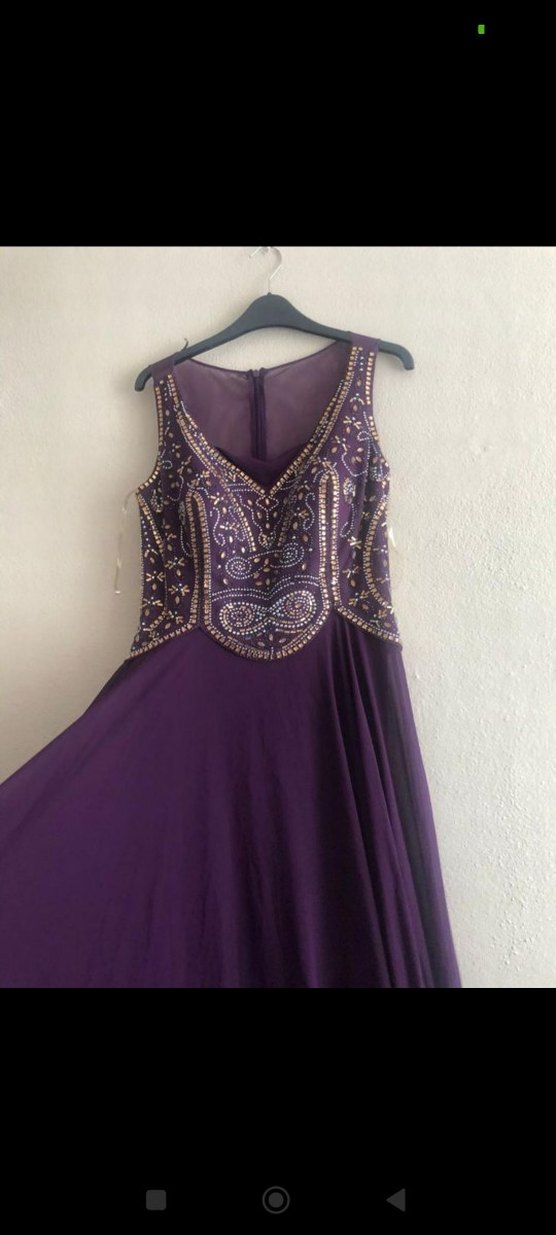 Boncuk İşlemeli Mor Uzun Abiye Elbise