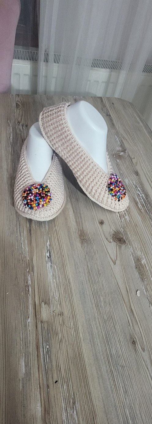 Boncuk İşlemeli Örgü Kadın Ev Terliği