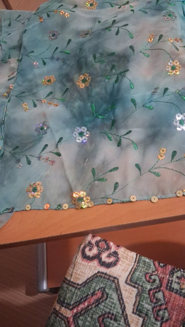 Kadınlar için boncuk işlemeli, parlak çok renkli tekstilden yapılmış, bohem tarzını yansıtan fular. ölcüleri 140×30 cm dir