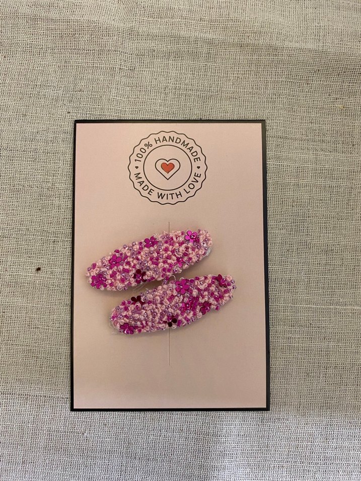 Boncuk İşlemeli Pembe Çocuk Toka Seti