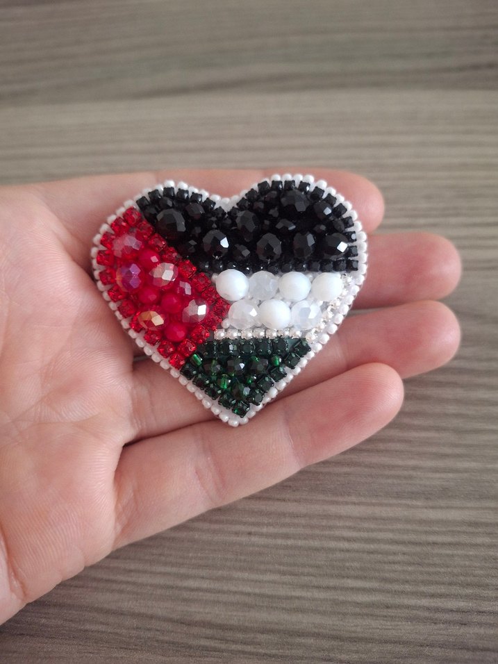 Boncuk İşlemeli Renkli Kalp Broş filistin bayragı