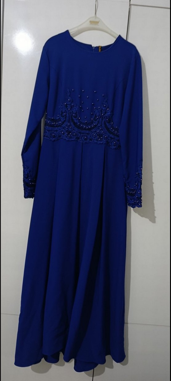 Boncuk İşlemeli saxs Mavi Uzun Abiye Elbise