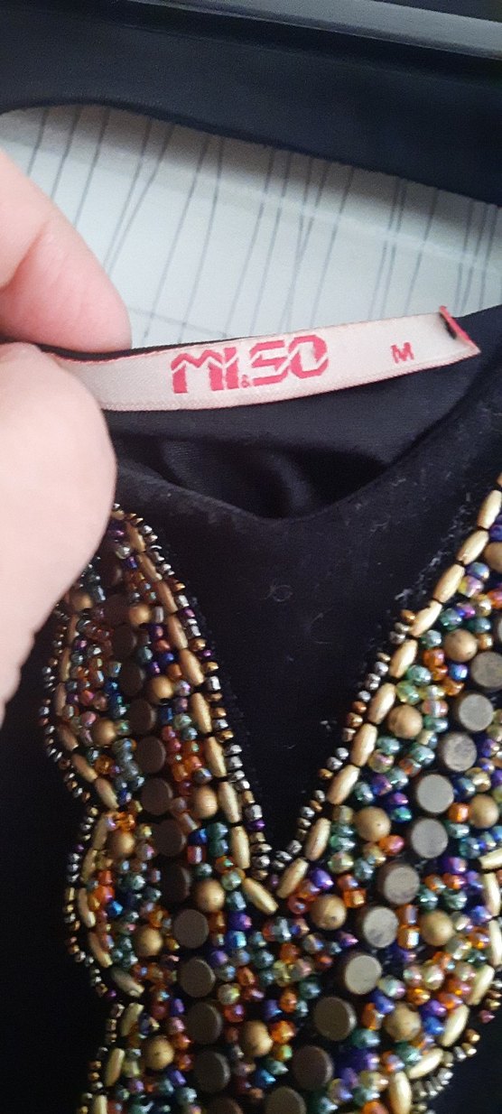 Boncuk işlemeli, V yaka ve askılı midi boy abiye elbise, romantik akşamlar için uygun.elbisenin her hangi bir defosu yok ,kol altı kısımlarına gelen yerlerde hafif pamuklanmalar var
