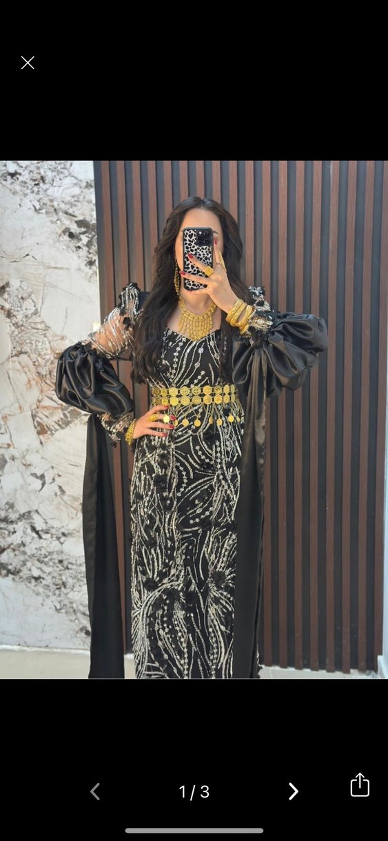 Boncuk işlemeli, etnik desenli siyah uzun elbise. Uzun kollu, straplez yakalı ve bol kesim, sentetik kumaştan, parti için uygun.