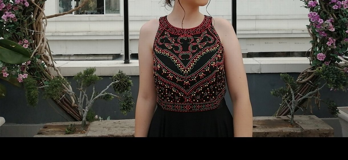 Bisiklet yaka, kolsuz, boncuk işlemeli siyah bohem uzun elbise. Sırt dekolteli, klos elbise. Astarlı. Sağ ve sol Bel kısminda küçük dekoltesi var