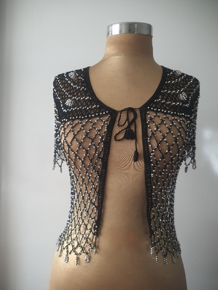 İşlemeli desenli, boncuklu siyah gotik tarzda vücut zinciri. Parti için modaya uygun ve avangart bir görünüm sağlar. ✨